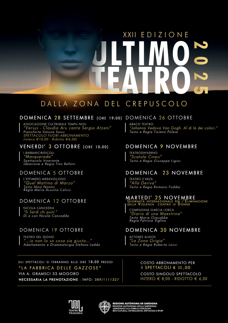 GLI SPETTACOLI SI TERRANNO PRESSO IL TEATRO “LA FABBRICA DELLE GAZZOSE” VIA A. GRAMSCI 33 MOGORO (OR)
